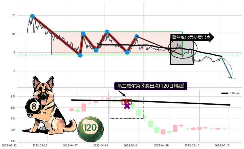 ♘ 阻力价格位8.01,可信任强度87.98%,距离最后交易2022-08-12形成的收盘价格7.43相差 +7.78%