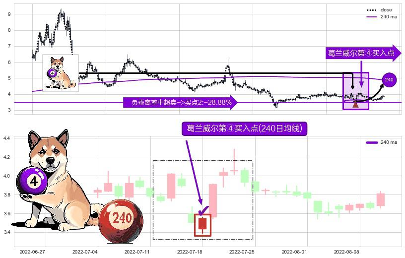 ⚀ 2022-07-18-日显现 葛兰威尔均线 240日均线 第④买入点 下降趋势均值回复的短线反弹信号,后市看涨,买进信号