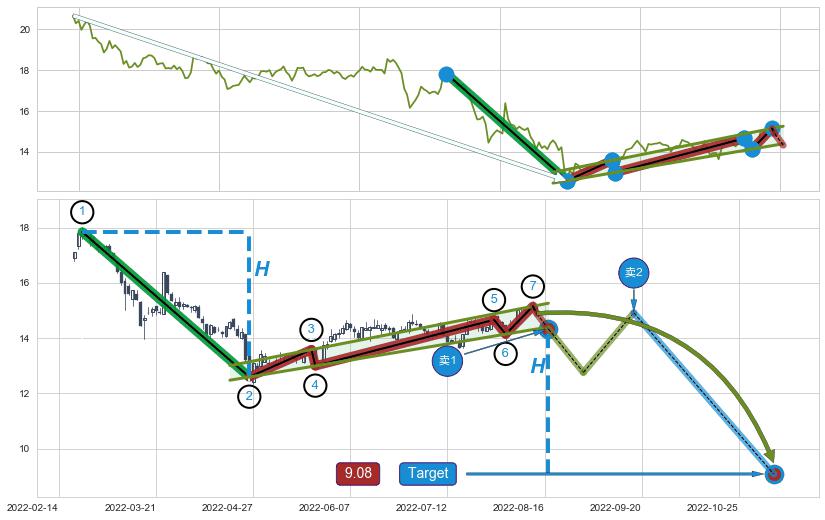 ➢ AI预测: 假定反转启动后, 第❷目标位置(2022-12-13, 14.17)