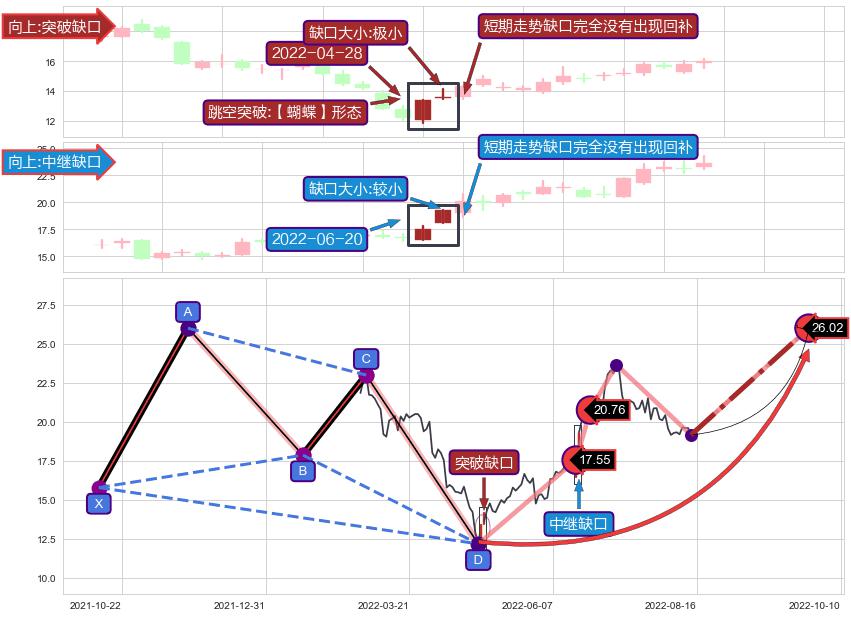 ➣ 已完成【蝴蝶】形态起点X: 2021-10-12, 终点D: 2022-04-26, 共133交易日