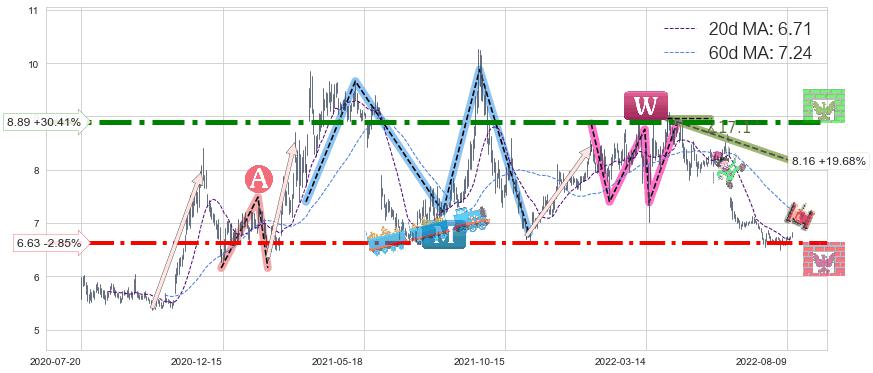 ♘ 支撑价格位6.63,可信任强度79.78%,距离最后交易2022-08-12形成的收盘价格6.82相差 -2.85%
