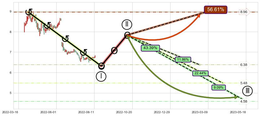 ➢ AI预测: 假定反转如期而至,第❸价格目标位置(2022-10-18, 8.96)