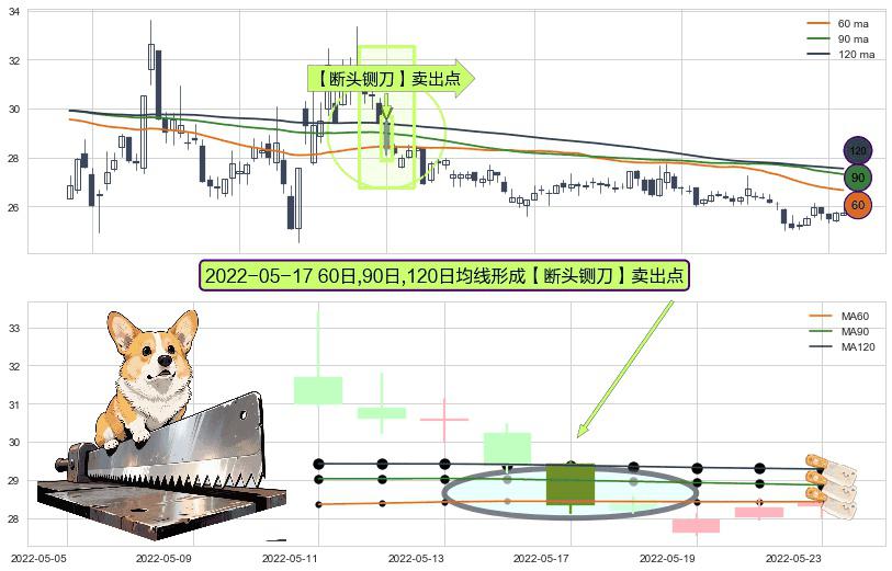 ⚀ 2022-05-17日显现 60日-90日-120日均线 【断头铡刀】卖出点 看空信号,后市看跌,卖出