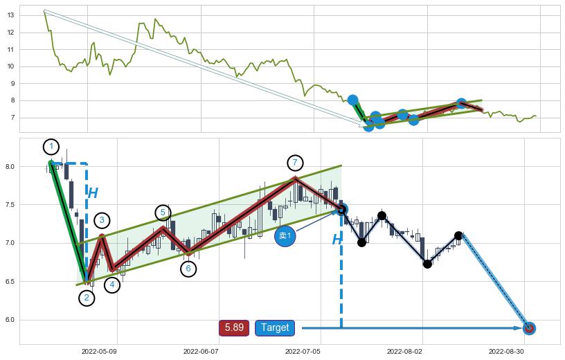 ➢ AI预测: 假定反转启动后, 第❷目标位置(2023-03-02, 7.92)