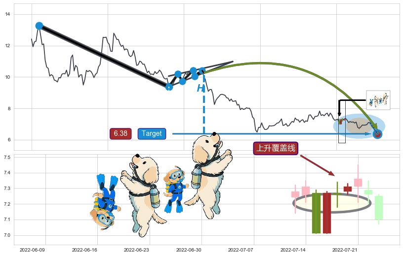 ♘ 支撑价格位6.87,可信任强度90.63%,距离最后交易2022-08-12形成的收盘价格7.09相差 -3.12%