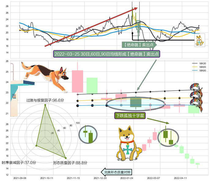 ➣ 2022-03-25日显现 30日-60日-90日均线 【绝命跳】卖出点 看空信号,后市看跌,卖出