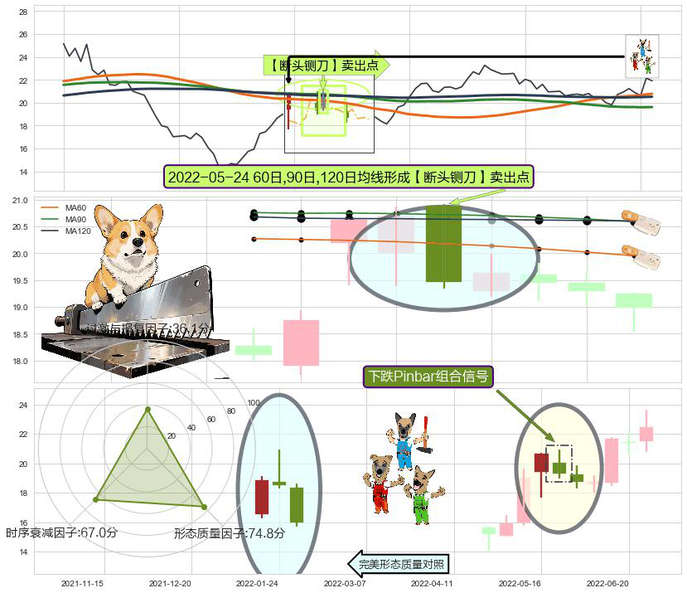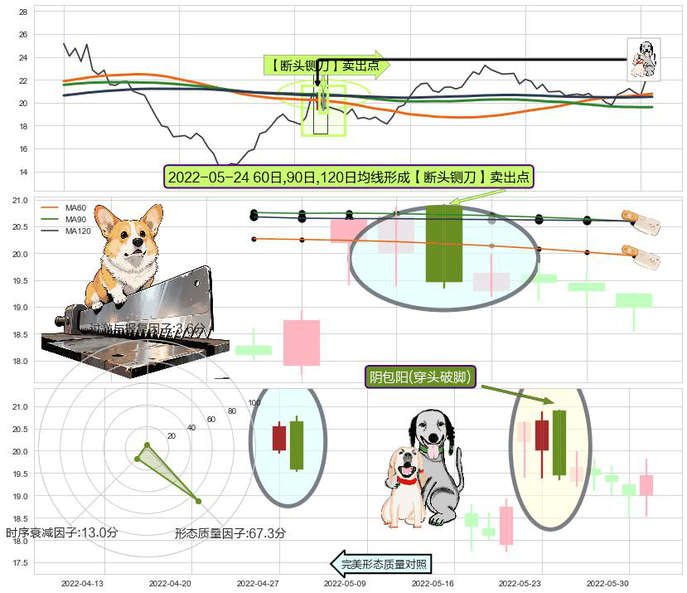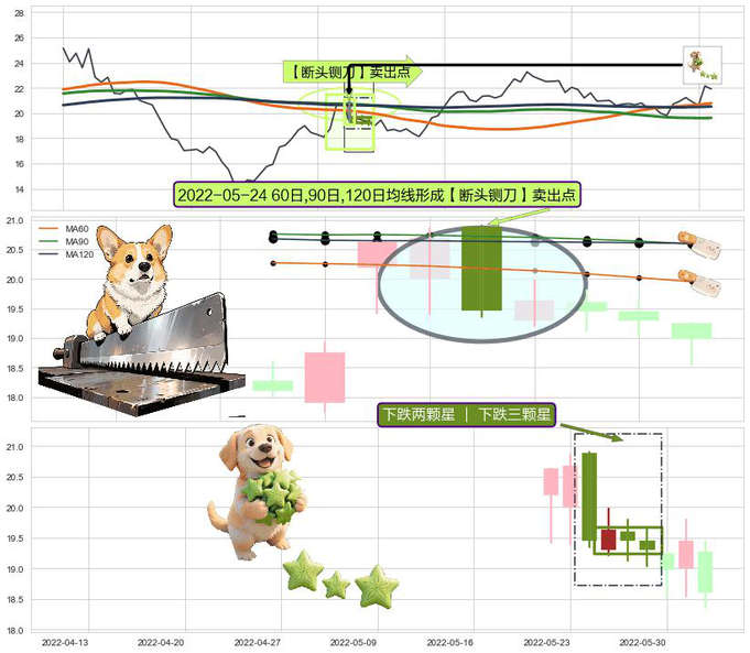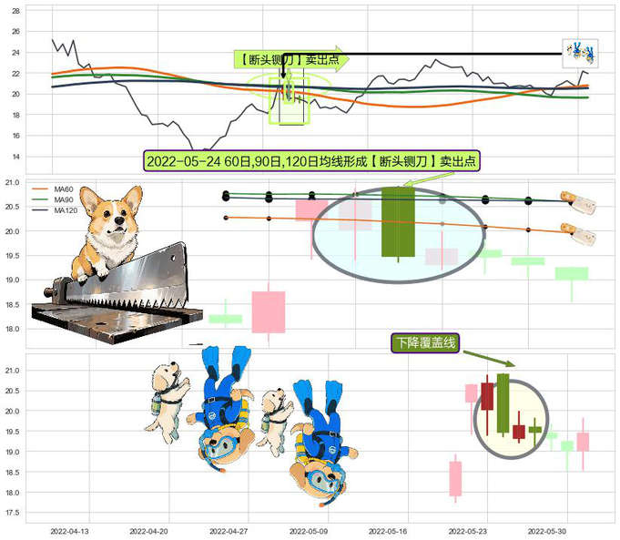 ➣ 2022-05-24日显现 60日-90日-120日均线 【断头铡刀】卖出点 看空信号,后市看跌,卖出