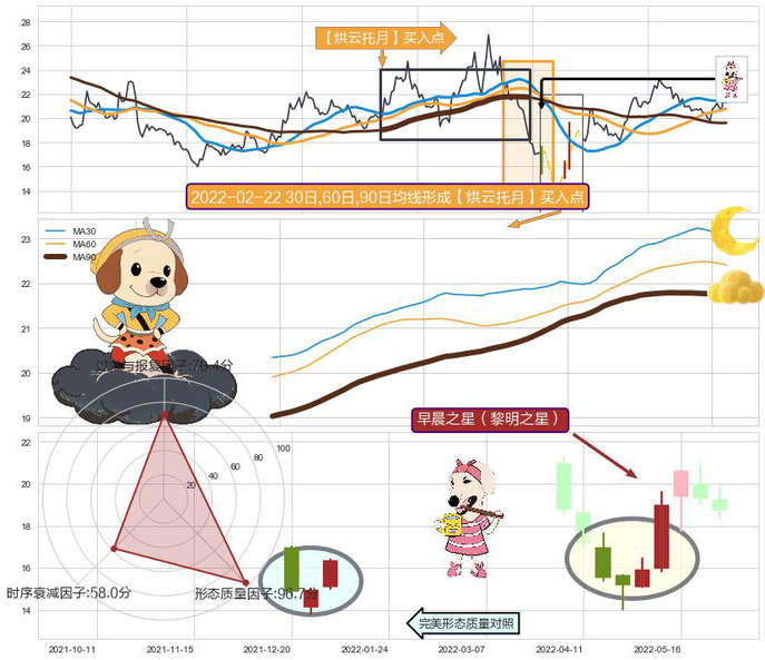➢ 🕰 价格走势在2022-04-18至2022-05-09期间形成早晨之星(黎明之星),残存影响值:5.03