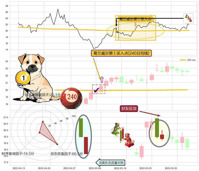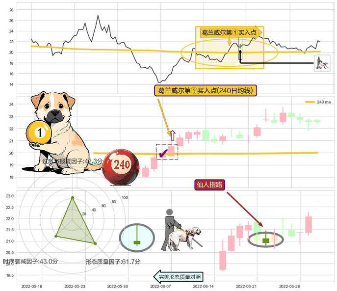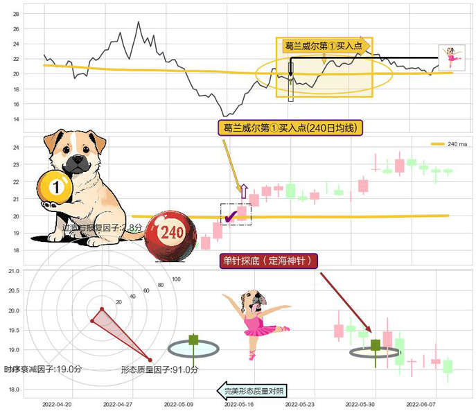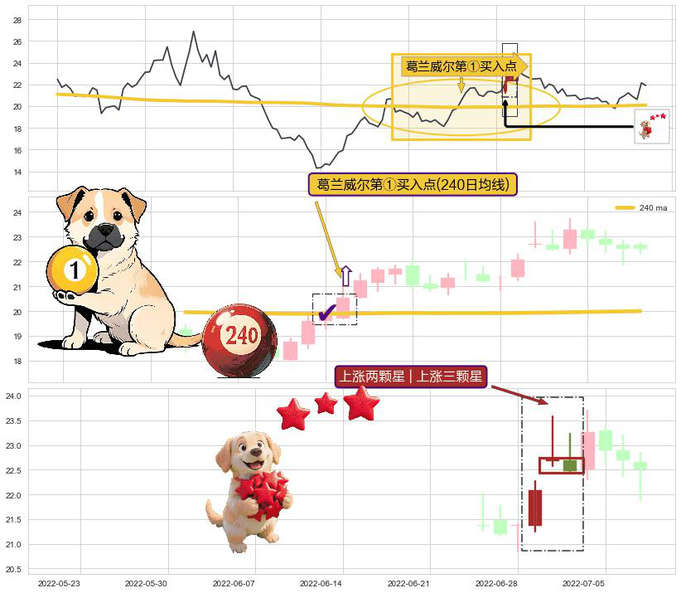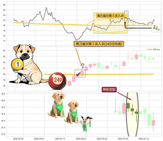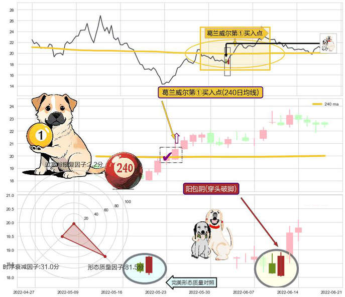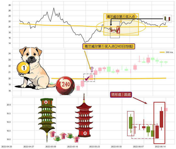 ➣ 2022-06-15-日显现 葛兰威尔均线 240日均线 第买①入点 走势反转见底信号,后市看涨,买进信号
