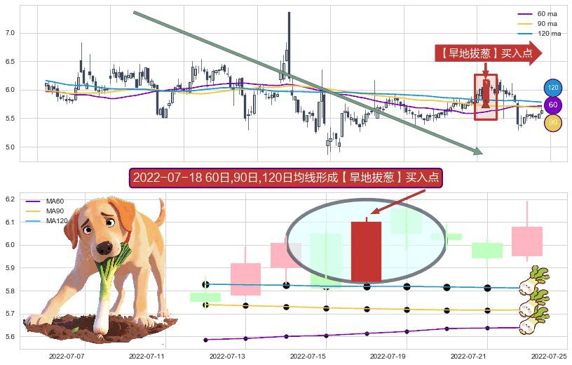 ⚀ 2022-07-18日显现 60日-90日-120日均线 【旱地拔葱】买入点 看多信号,后市看涨,买入