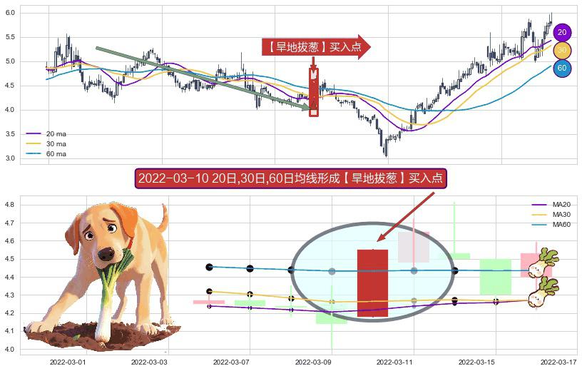 形态多维评估: ⚀ 2022-03-10日显现 20日-30日-60日均线 【旱地拔葱】买入点 看多信号,后市看涨,买入