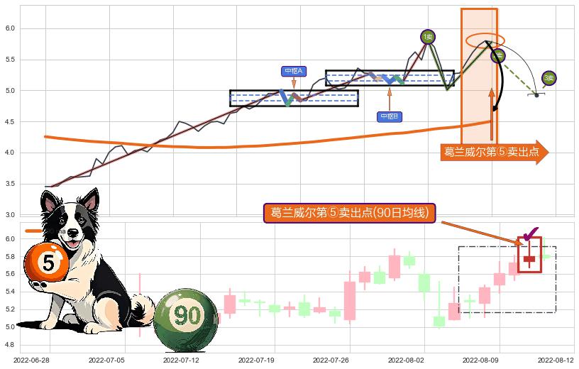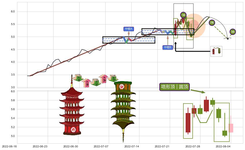 ➢ 收盘价(2022-08-11: 5.80 )→回踩→第一根k线低点(2022-08-01: 5.66 )