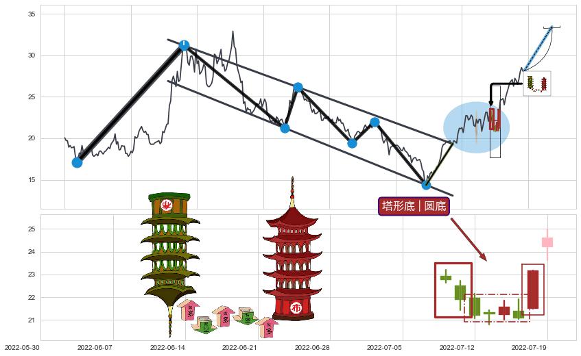 | 2 🅚:下探上涨 ➕ 📐:降旗形向上突破击穿阻力位, 猜想持续拉升上涨,被突破的阻力位已变为支撑位 ☞ 看多信号 ⇥ 【🅚线】交织【图形】⇥ 综合量化分数: 52 | > |