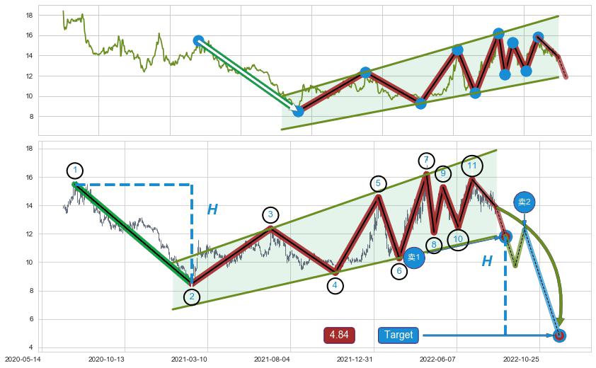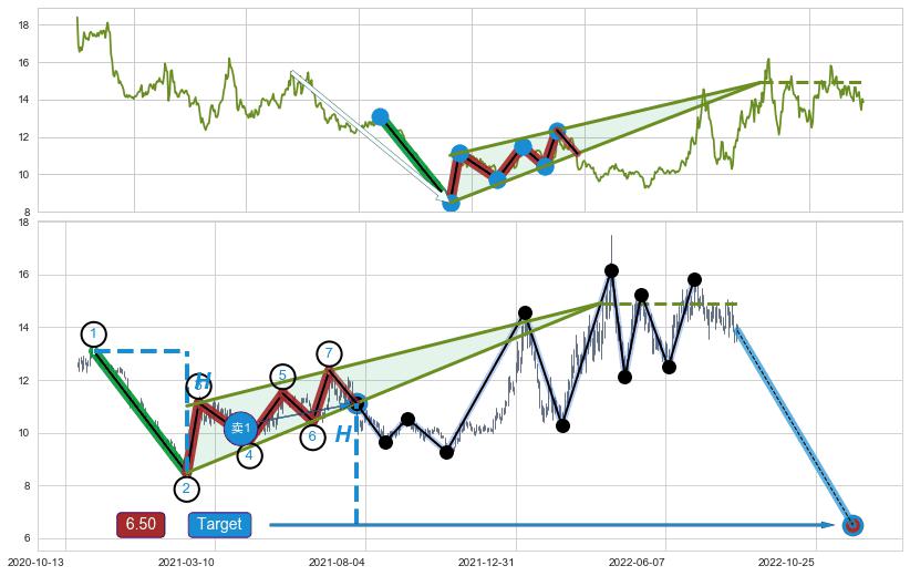 ➢ 2022-04-20到达第❶价格目标位置13.22