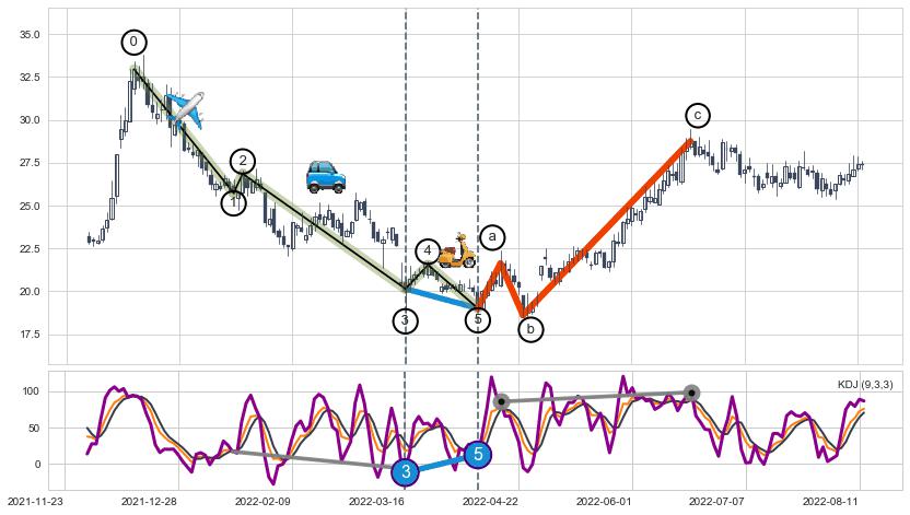 ➣ a,c调整浪KDJ走势未出现明显背离
