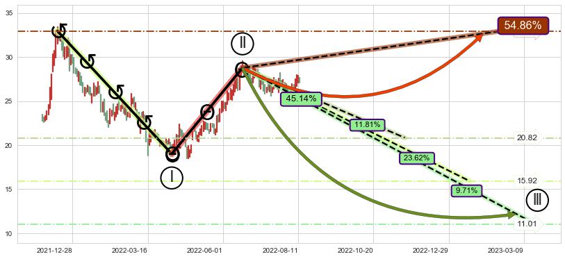 ➢ AI预测: 假定反转启动后, 第❷目标位置(2022-08-31, 26.46)