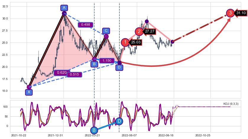 ➣ 2022-06-10到达第❷价格目标位置27.27
