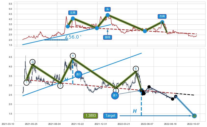 ➣ 最小反转跌幅→𝐇: 1.3502 (头部与颈线垂直距离)