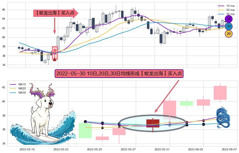 ⚀ 2022-05-30日显现 10日-20日-30日均线 【蛟龙出海】买入点 看多信号,后市看涨,买入