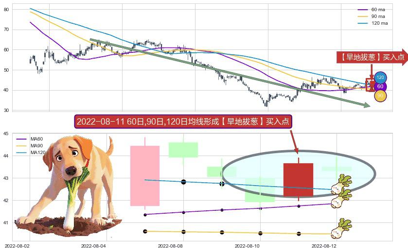 ⚀ 2022-08-11日显现 60日-90日-120日均线 【旱地拔葱】买入点 看多信号,后市看涨,买入