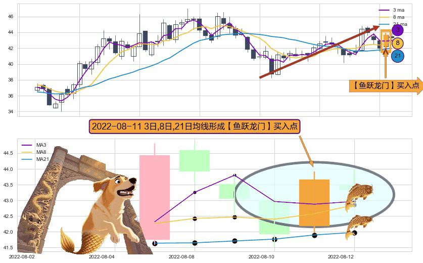 ⚀ 2022-08-11日显现 3日-8日-21日均线 【鱼跃龙门】买入点 看多信号,后市看涨,买入