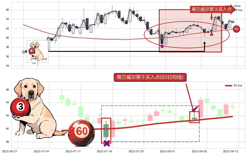 ⚀ 2022-08-04-日显现 葛兰威尔均线 60日均线 第③买入点 上升趋势的中继信号,后市看涨,买进信号