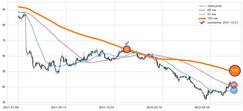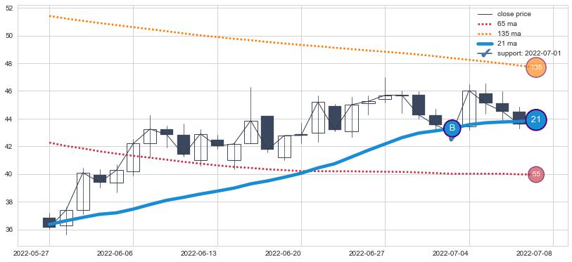 ⚂ 2022-07-15-日均线向下破位,2022-08-04-日重新上穿突破均线,均线支撑再次生效