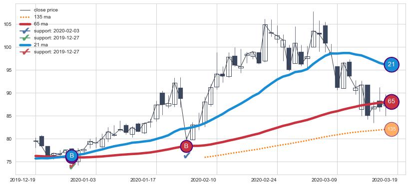 ⚀ 中期均线MA21上穿长期均线MA34形成的交叉是标准 黄金交叉