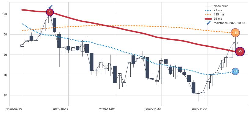 ➣ 历史趋势中共发现7处重要支撑阻力位,其中关键支撑位5处, 关键阻力位2处