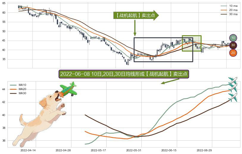 ⚀ 2022-05-09日-2022-07-06日显现 10日-20日-30日均线 【战机起航】卖出点 看空信号,后市看跌,卖出
