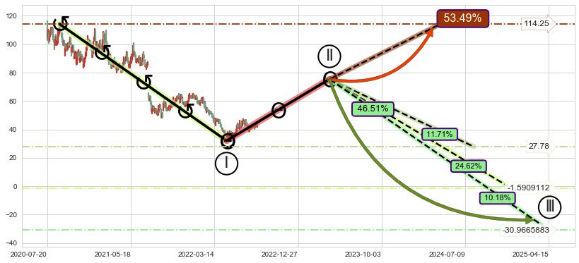 ➣ 大趋势循环浪继续向下概率46.51%