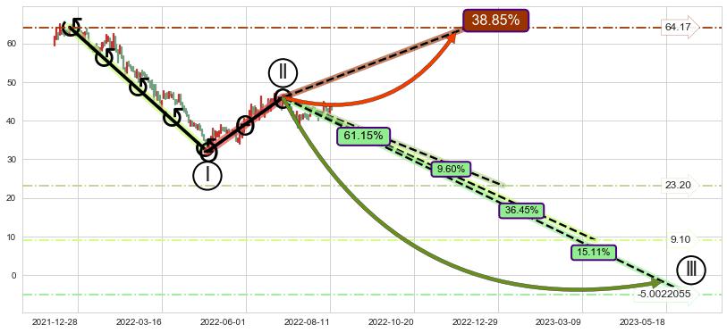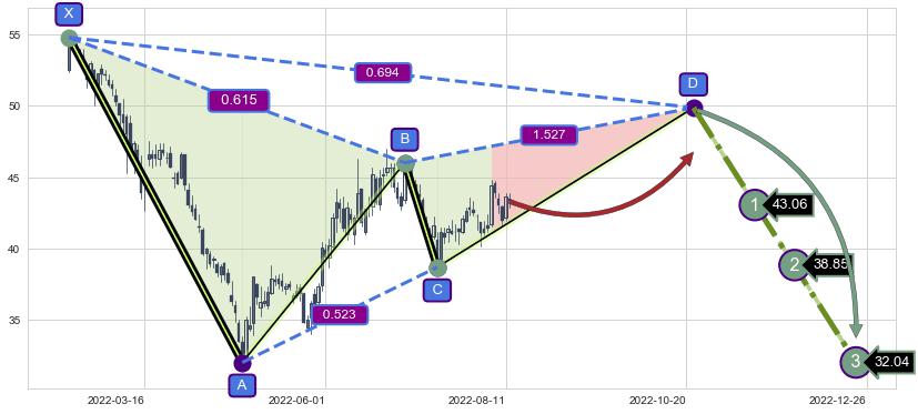 ➣ D点拟合预测价格49.87,距离最后交易收盘价格43.32相差 +15.13%