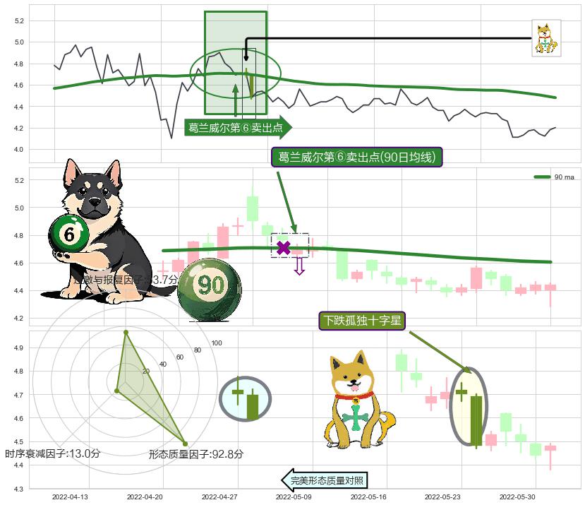 | 2 🅚:乌云盖顶 ➕ 🎢:葛兰威尔第⑥卖出点卖出点信号形成后,猜想后续上涨趋势反转下跌趋势(均值回复) ☞ 看空信号 ⇥ 【均线】交织【🅚线】⇥ 综合量化分数: 38 | > |
