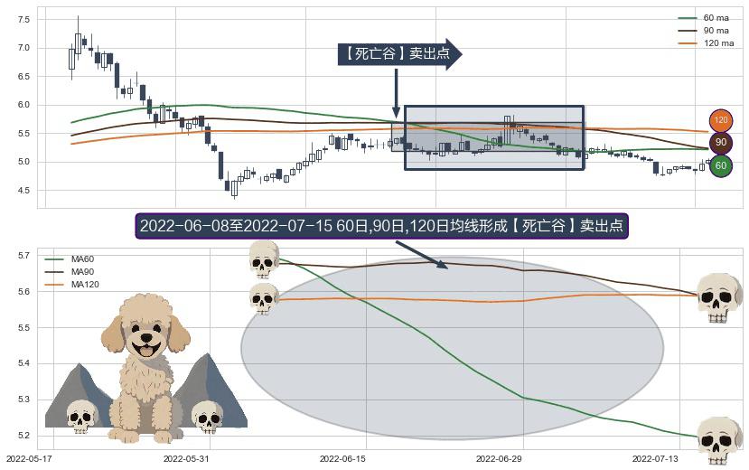 ⚀ 2022-06-09-日至2022-07-15-日显现 60日-90日-120日均线 【死亡谷】卖出点 看空信号,后市看跌,卖出