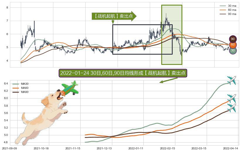 ⚀ 2021-11-18日-2022-04-06日显现 30日-60日-90日均线 【战机起航】卖出点 看空信号,后市看跌,卖出