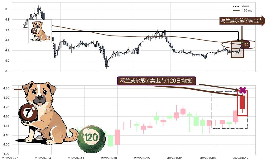 ⚀ 2022-08-12-日显现 葛兰威尔均线 120日均线 第⑦卖出点 下降趋势的中继信号,后市看跌,卖出信号