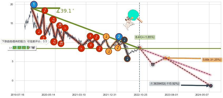 ♘ 在最后的下跌阶段2019-09-23至2022-08-09,存在 破位边缘的阻力位 ,阻力价格8.41,可信任强度76.51%,其距离最后价格8.57相差 -1.85%