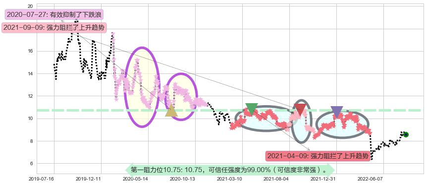 ♘ 阻力价格位10.75,可信任强度99.00%,距离最后交易2022-08-12形成的收盘价格8.57相差 +25.48%