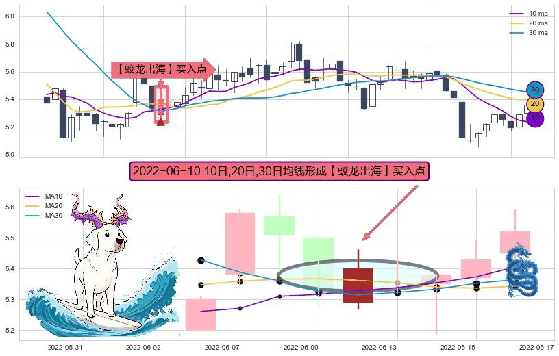 形态多维评估: ⚀ 2022-06-10日显现 10日-20日-30日均线 【蛟龙出海】买入点 看多信号,后市看涨,买入