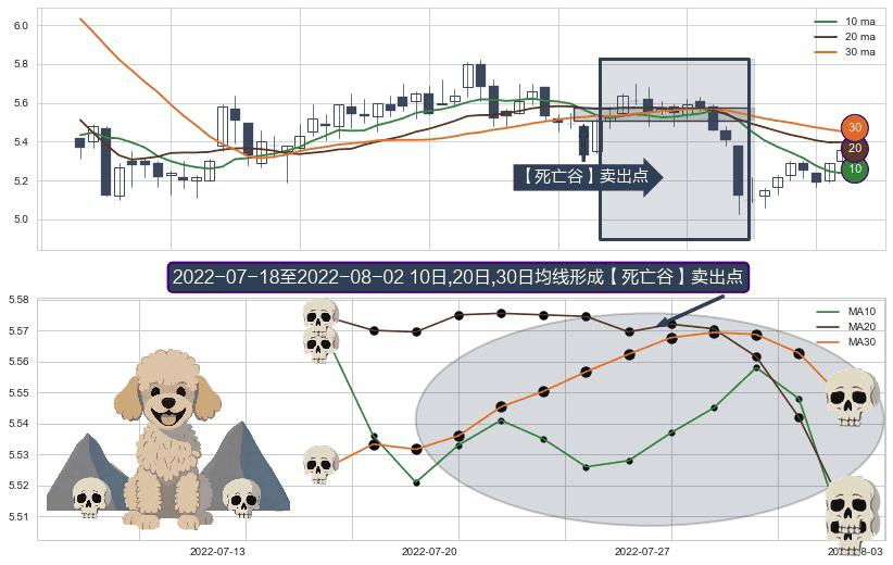 形态多维评估: ⚀ 2022-07-19-日至2022-08-02-日显现 10日-20日-30日均线 【死亡谷】卖出点 看空信号,后市看跌,卖出