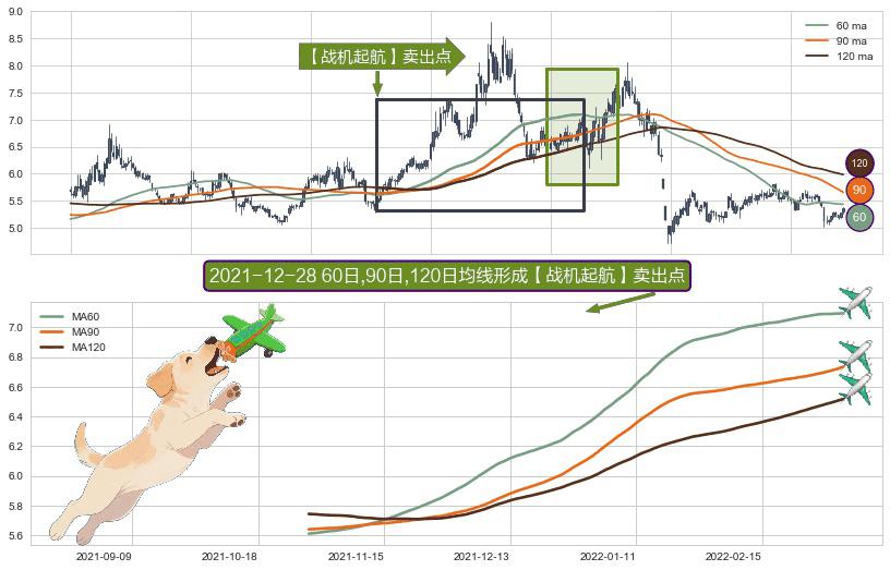 形态多维评估: ⚀ 2021-10-28日-2022-03-04日显现 60日-90日-120日均线 【战机起航】卖出点 看空信号,后市看跌,卖出