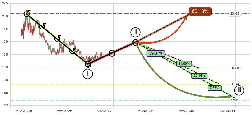 ➢ 循环浪继续向下【最低】位置(2025-03-07, 3.502),匹配聚类样本比例19.73%, 可能性概率7.87%