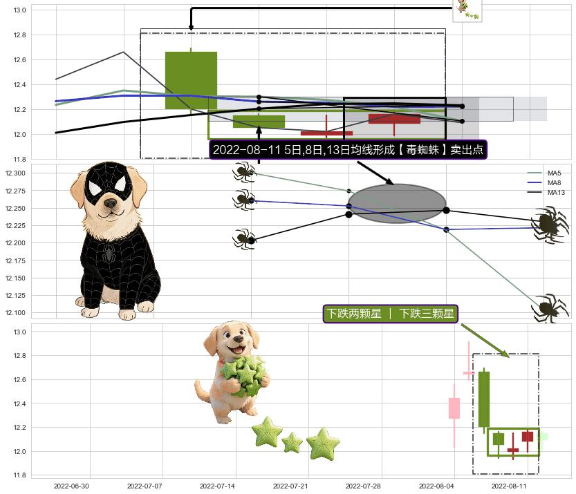 | 2 🅚:【毒蜘蛛】卖出点 ➕ 📐:升旗形猜想突破点临近,临近关键支撑位,预期下沉突破下跌 ☞ 看空信号 ⇥ 【均线】交织【图形】⇥ 综合量化分数: 47 | > |