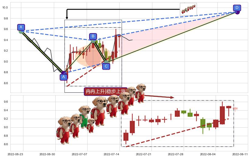 ➣ D点拟合预测价格9.92,距离最后交易收盘价格9.40相差 +5.52%