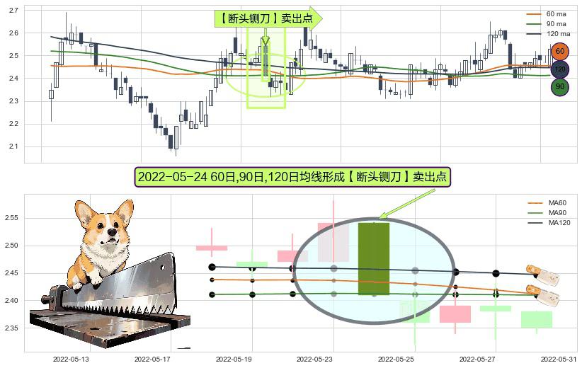 ⚀ 2022-05-24日显现 60日-90日-120日均线 【断头铡刀】卖出点 看空信号,后市看跌,卖出