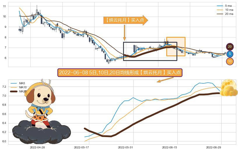 形态多维评估: ⚀ 2022-05-16日-2022-06-30日显现 5日-10日-20日均线 【烘云托月】买入点 看多信号,后市看涨,买入
