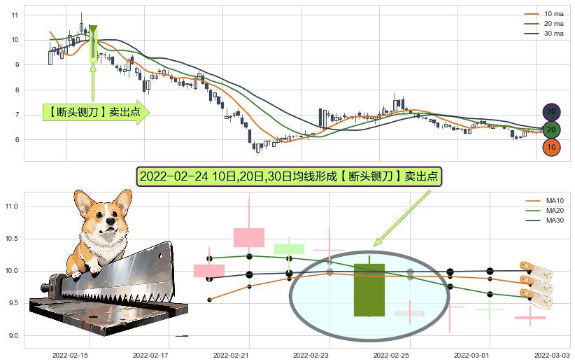 形态多维评估: ⚀ 2022-02-24日显现 10日-20日-30日均线 【断头铡刀】卖出点 看空信号,后市看跌,卖出