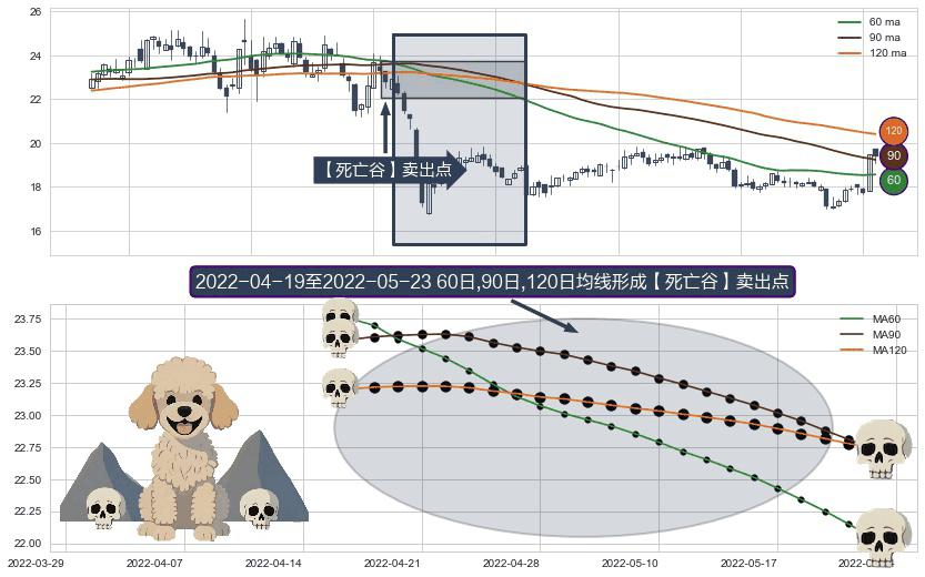 形态多维评估: ⚀ 2022-04-20-日至2022-05-23-日显现 60日-90日-120日均线 【死亡谷】卖出点 看空信号,后市看跌,卖出