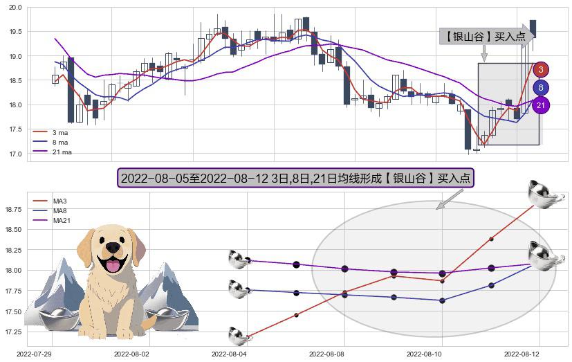 形态多维评估: ⚀ 2022-08-08-日至2022-08-12-日显现 3日-8日-21日均线 【银山谷】买入点 看多信号,后市看涨,买入