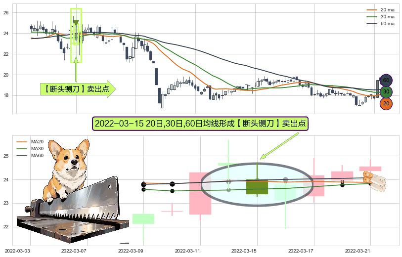 形态多维评估: ⚀ 2022-03-15日显现 20日-30日-60日均线 【断头铡刀】卖出点 看空信号,后市看跌,卖出